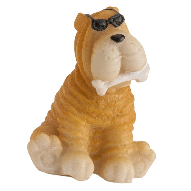 1 fève adorable chien 3,5 cm en résine. Coloris et motif aléatoire.